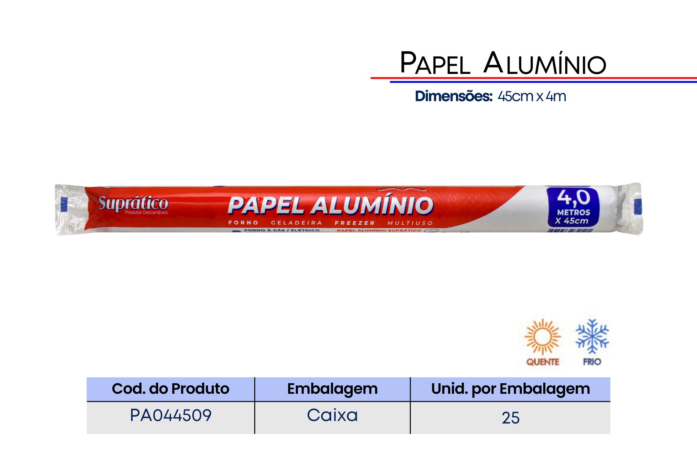 O Papel Alumínio Suprático é de alta qualidade. É um produto reciclável, não perecível e está disponível em vários tamanhos. São ideais para proteger e conservar alimentos.
