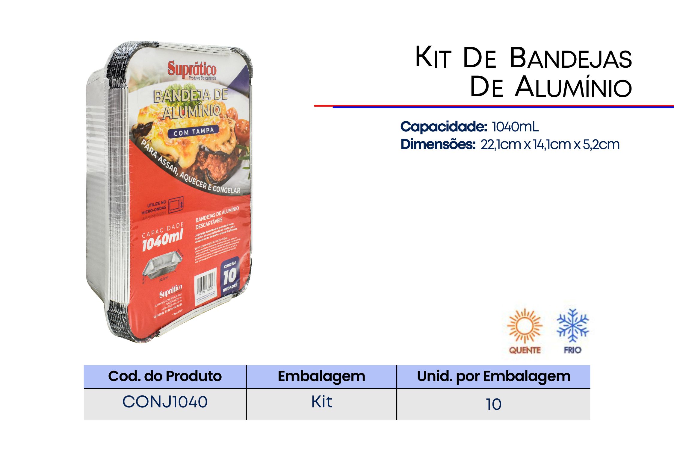 Kit de Bandejas de Alumínio da Suprático são de alta qualidade, recicláveis e não perecíveis.